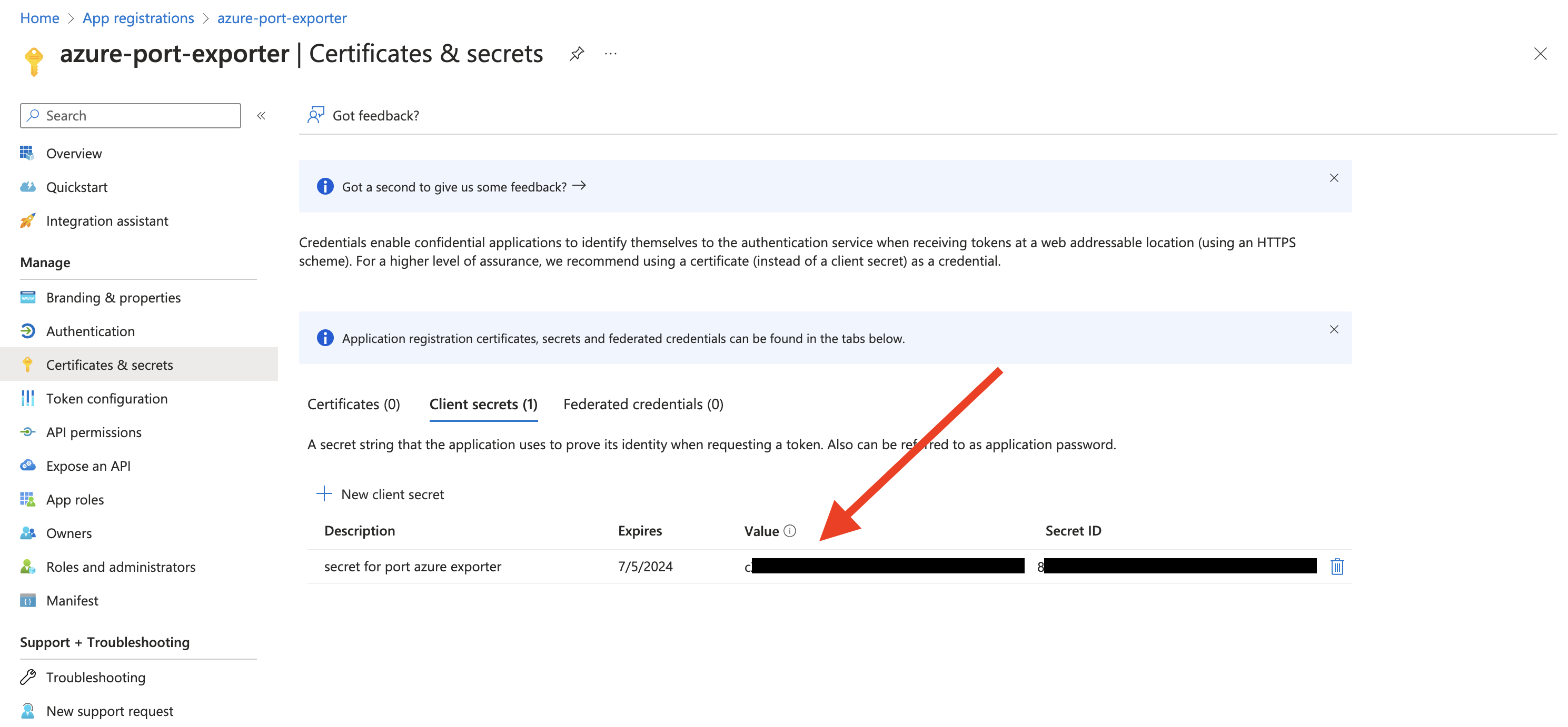 - Create a client secret for the App Registration.